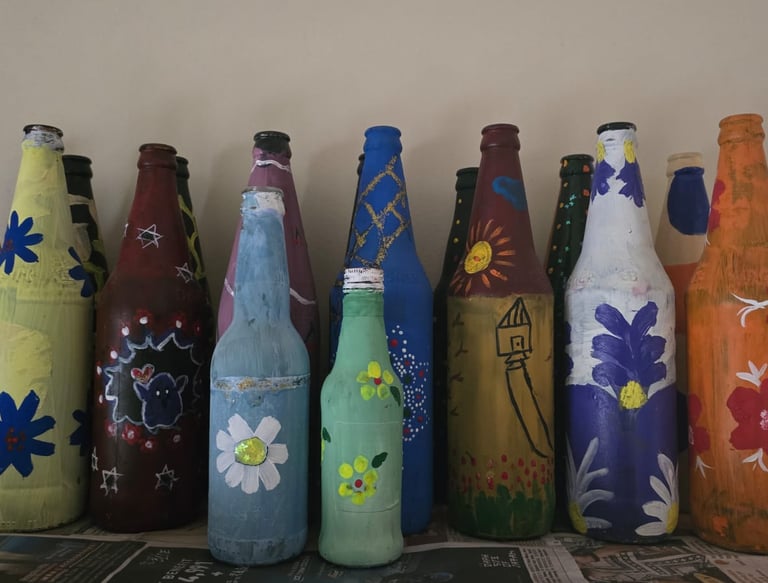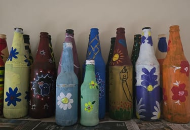 At Mayra, each painted bottle tells a story, bringing warmth and color to your home.