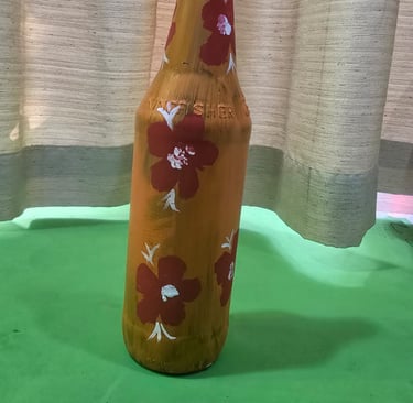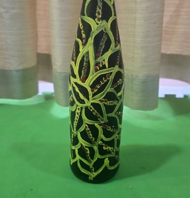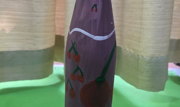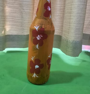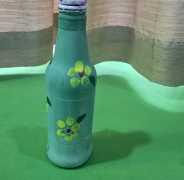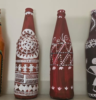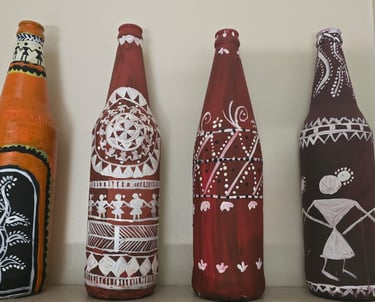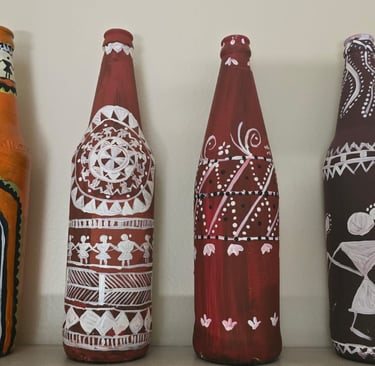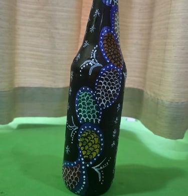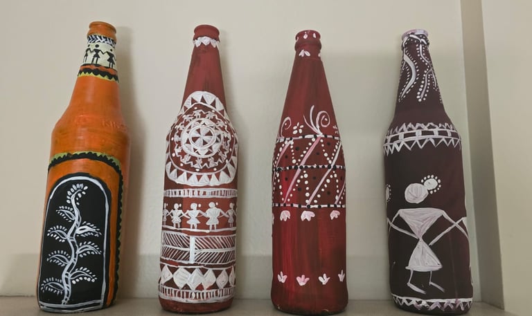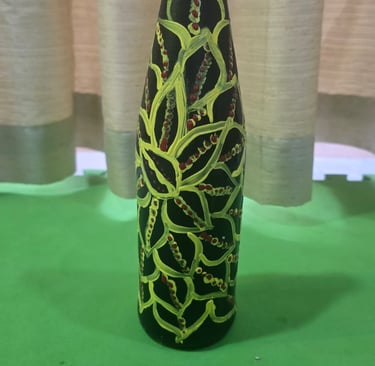Bottles painted with leaves and natural motifs bring a touch of the outdoors inside your home.